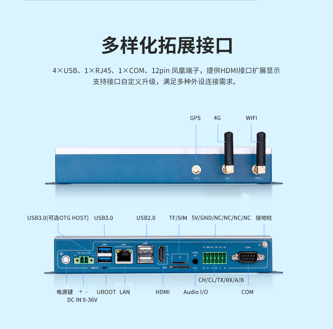 接口參數 USB 2*USB3.0,2*USB2.0,(可選升級千兆RJ45),可選升級6路USB2.0